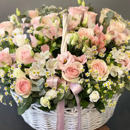Солнце в руках, букет с ранункулюсами, ромашками и пионовидными розами