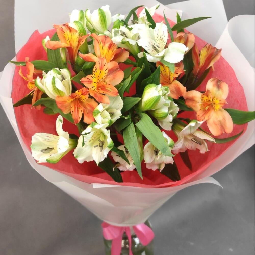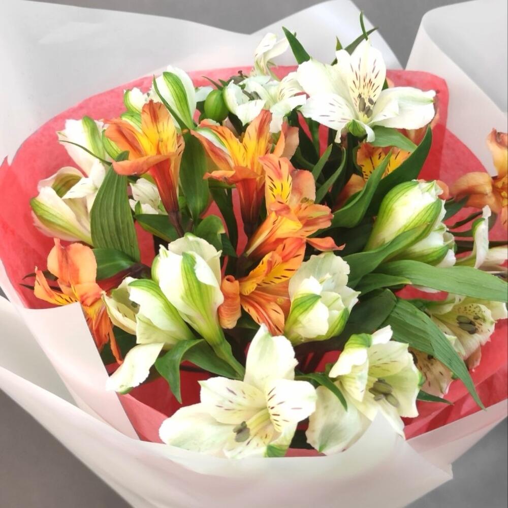 Альстромерия – 7 шт. Открыточка с вашими пожеланиями – 1 шт. Дизайнерская упаковка – 1 шт.