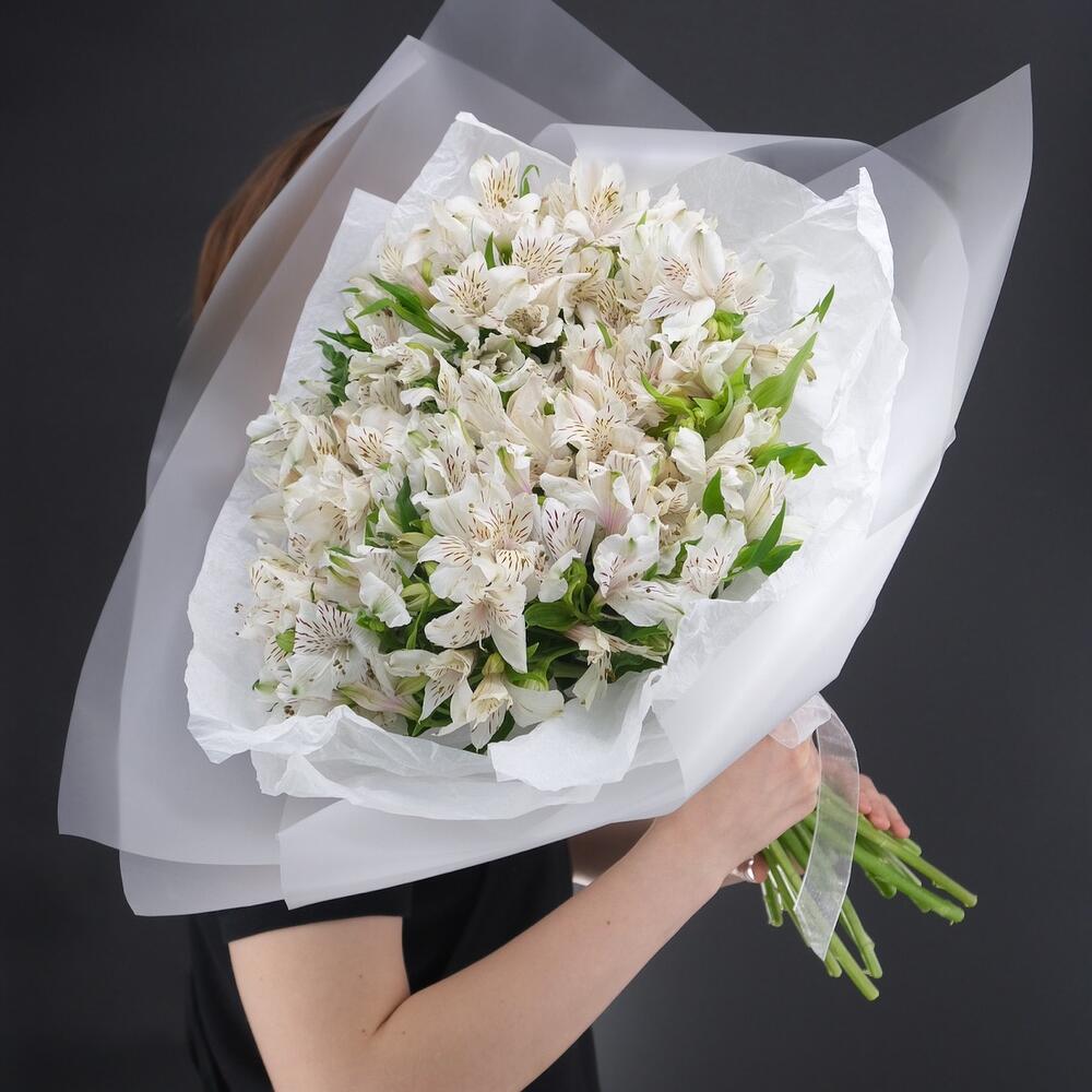 Альстромерия – 21 шт.подкормка для срезанных цветов – 1 шт.инструкция по уходу за цветами – 1 шт.упаковка (тишью и матовая пленка) – 1 шт.