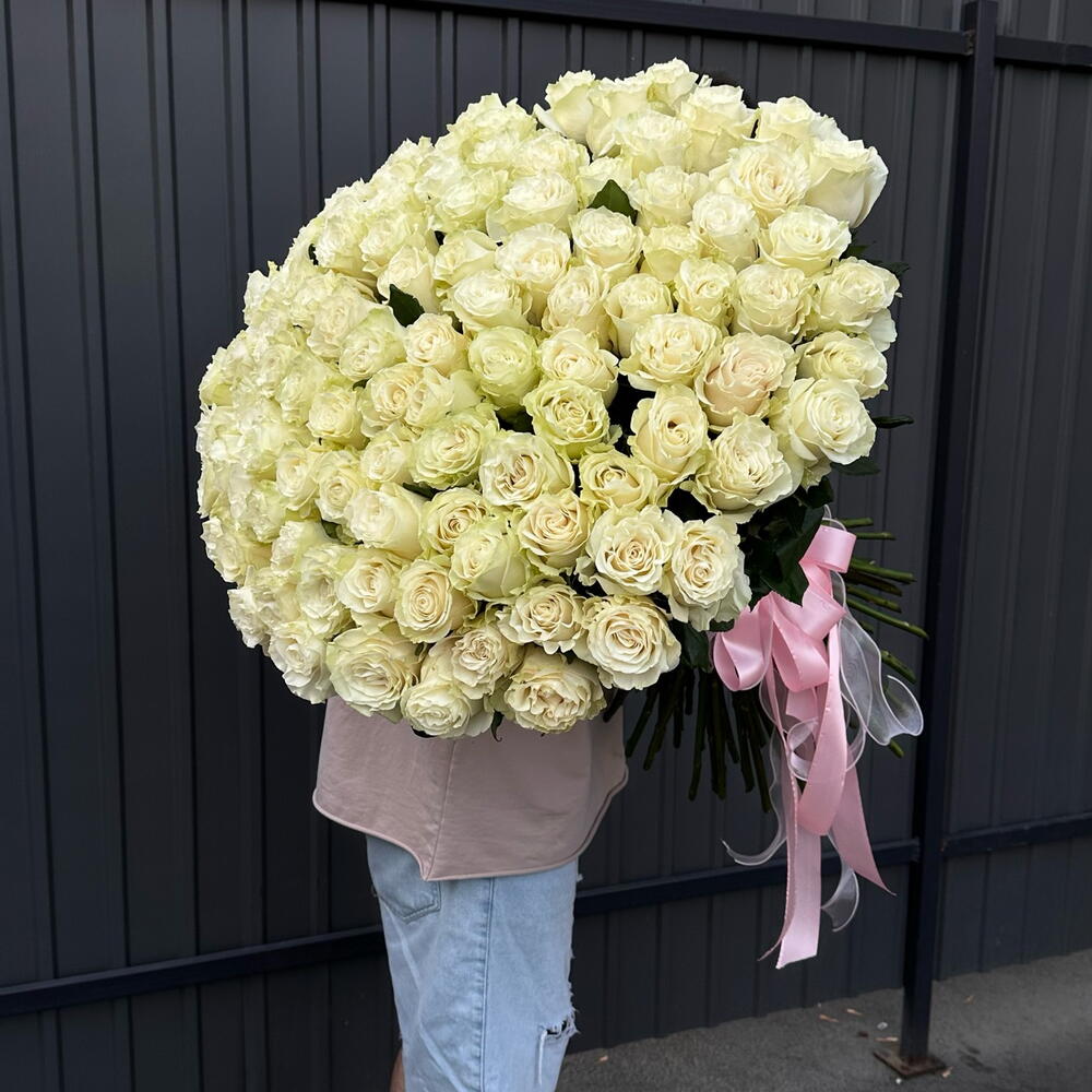 Білі голландські троянди: Букет складається з білих голландських троянд, які відомі своєю вишуканістю та довготривалістю життя. А також ароматом!!!