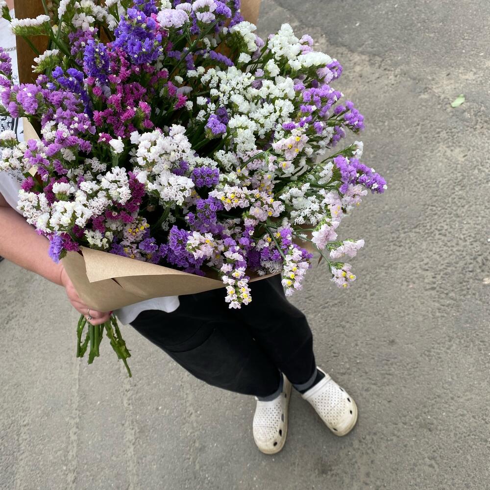 «Лавандовое созвездие» Букет из розы, гвоздики, статица и хлопка