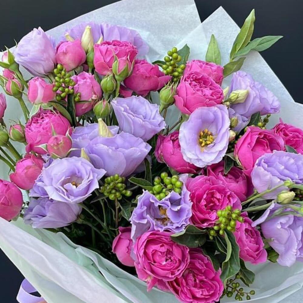 Гвоздики, Кустовые розы, Лизиантусы, Пионовидные розы, Розы