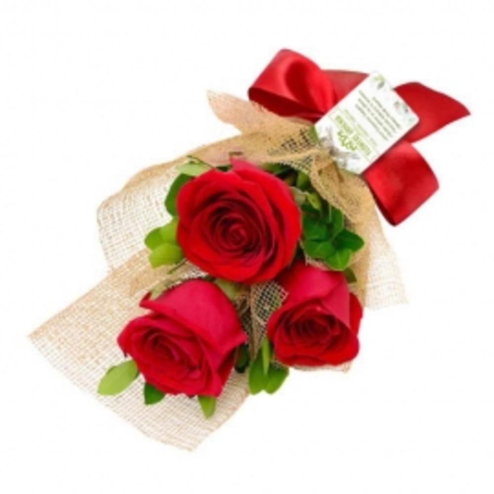 A luxurious and bright bouquet of 3 roses with stylish design and the addition of greenery for contrast is the best present for your beloved!