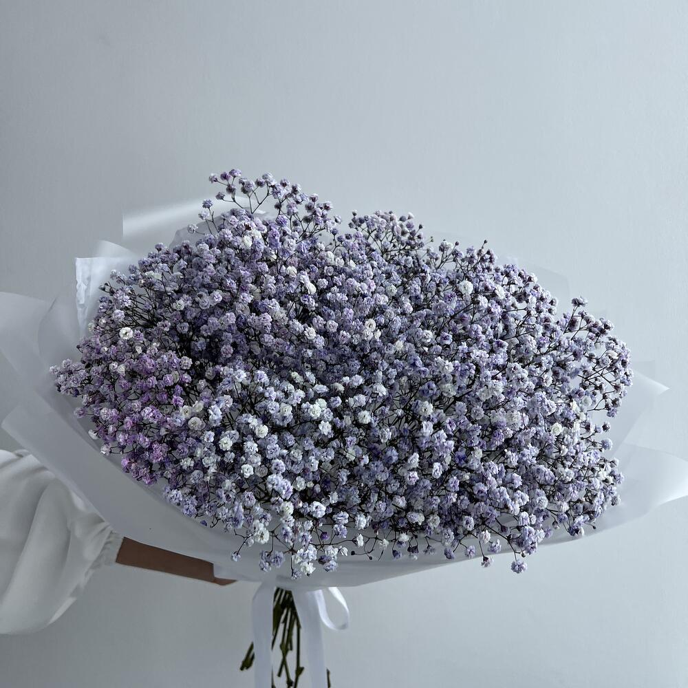 «Лавандовое созвездие» Букет из розы, гвоздики, статица и хлопка