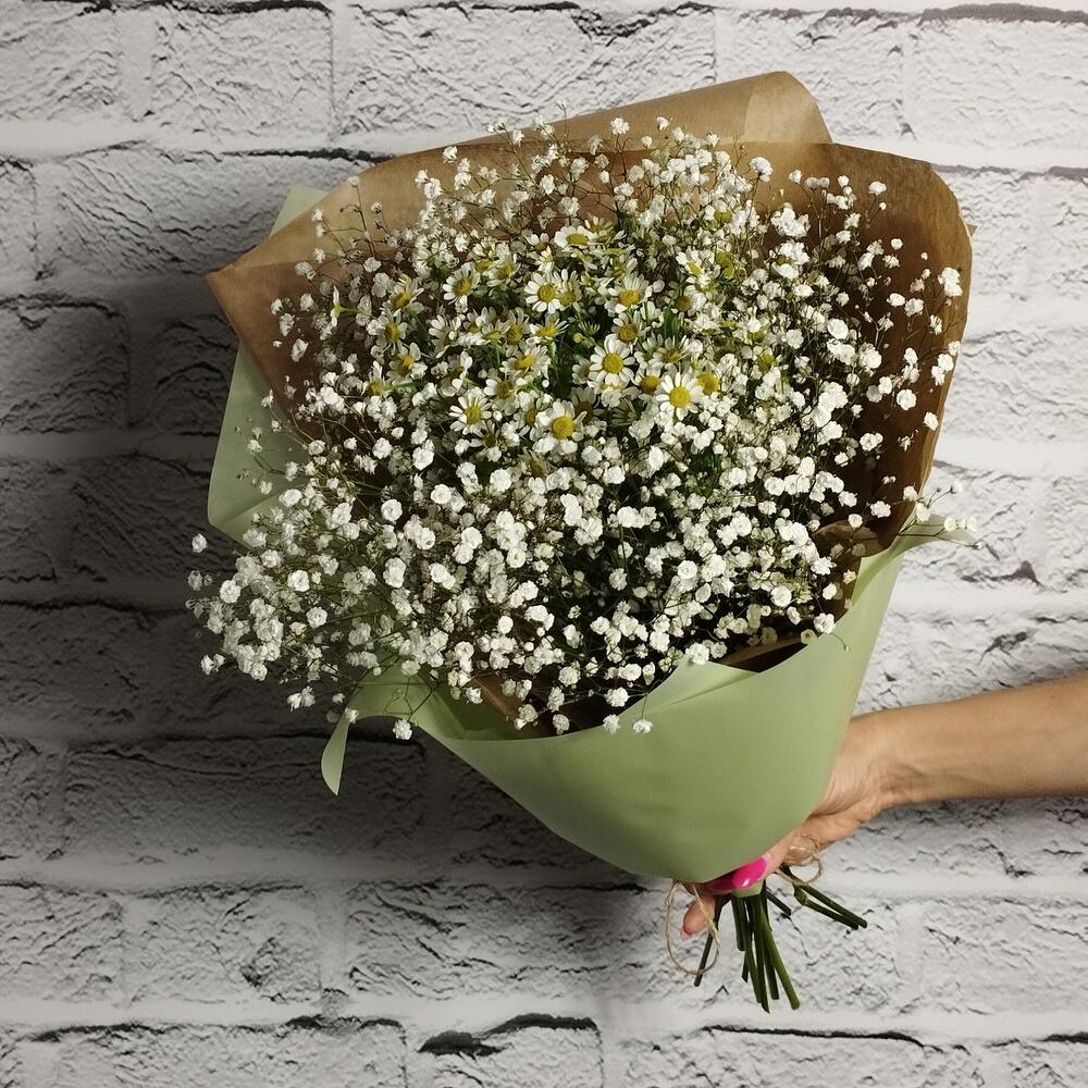 Букет "Ромашки в облаках" ромашки гипсофила