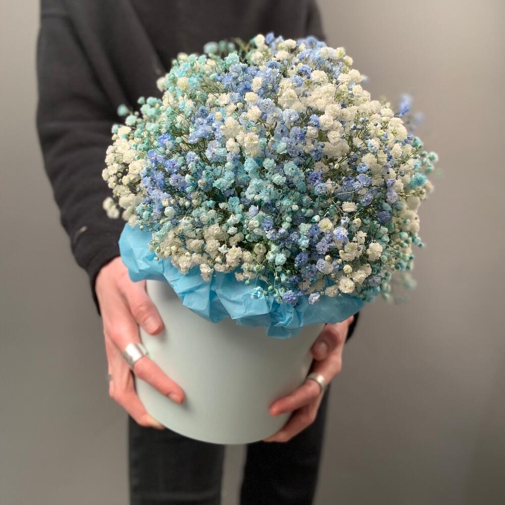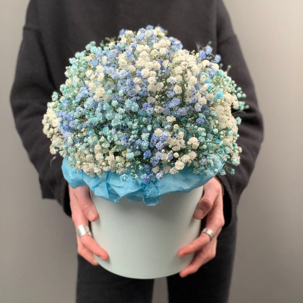 Голубая гипсофила в шляпной коробке М