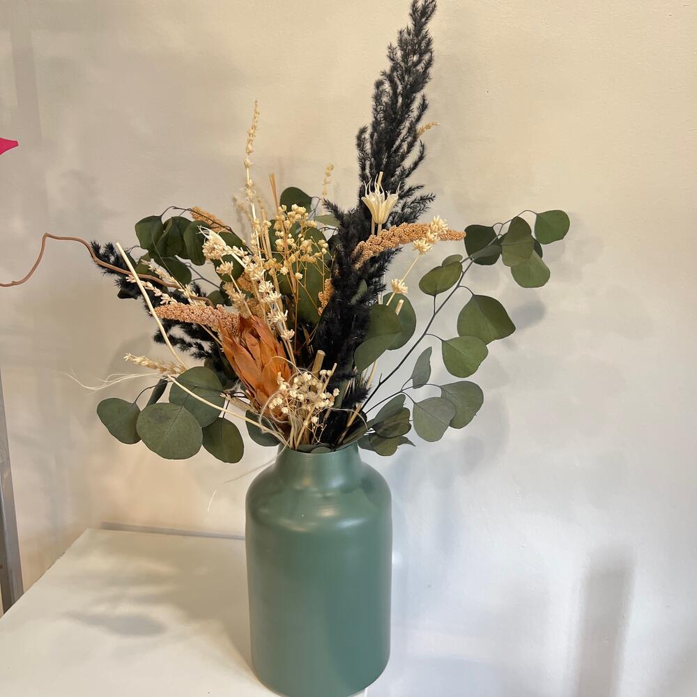 Интерьерная композиция из стабилизированных цветов и сухоцветов