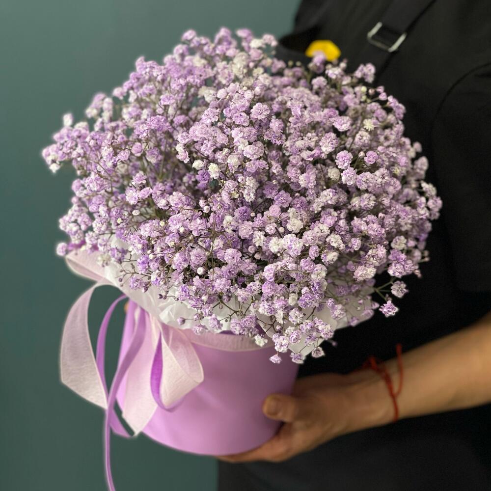 Гипсофила – 6 шт.Лента атласная – 1 шт.Коробка шляпная – 1 шт.