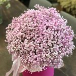 “Сиреневый туман” – композиция из гипсофилы в шляпной коробке