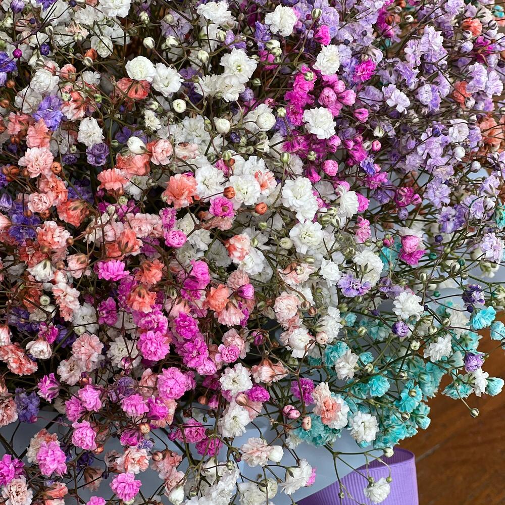 Нежная композиция из радужной голландской гипсофилы в коробочке порадует ваших близких по поводу и без