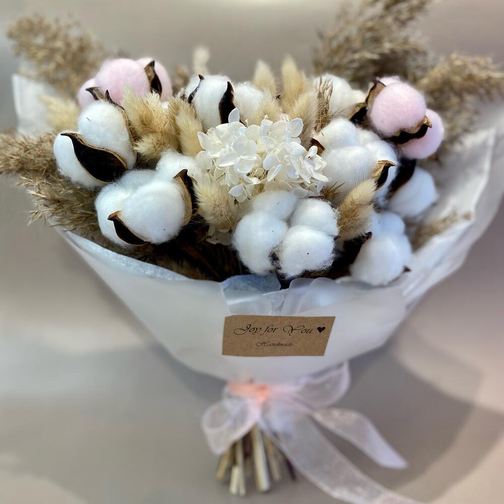Хлопок – 13 шт.пампасная трава – 4 шт.гортензия стабилизированная – 1 шт.