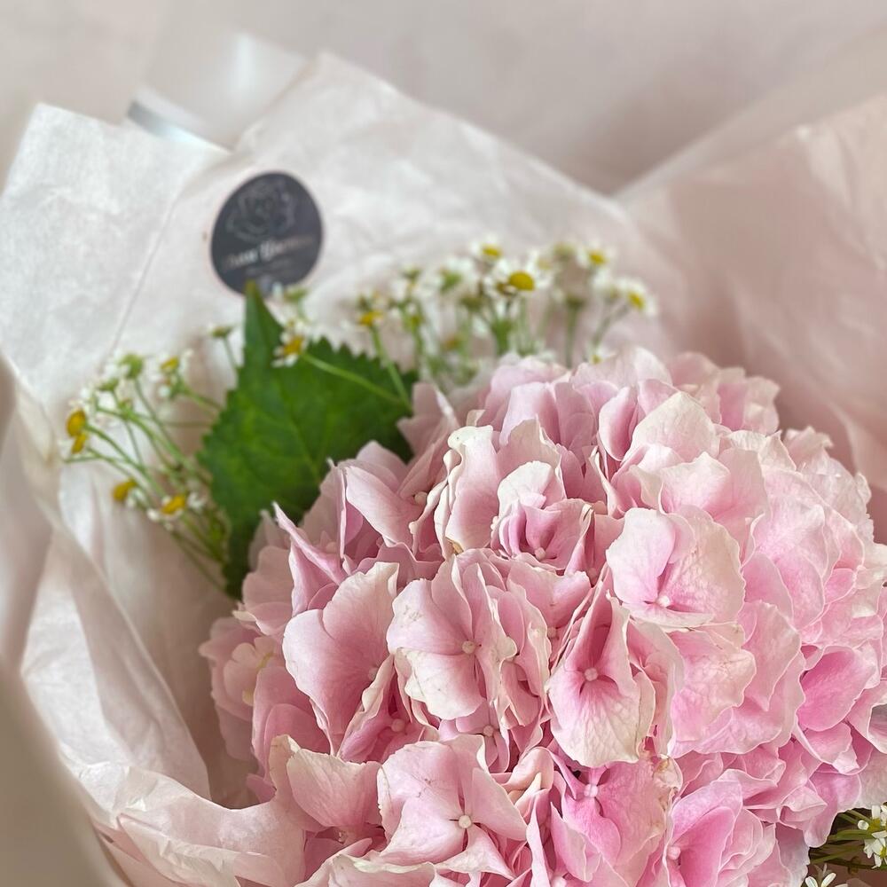 Букет с гортензией и ромашкой