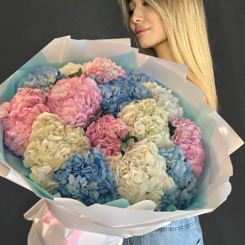 Гортензии, Кустовые розы, Пионовидные розы, Розы