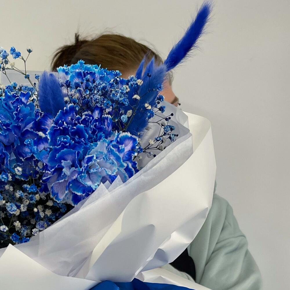 Диантус сортовой – 5 шт.Гипсофила – 2 шт.Тишью белое – 2 шт.Пленка матовая – 6 шт.
