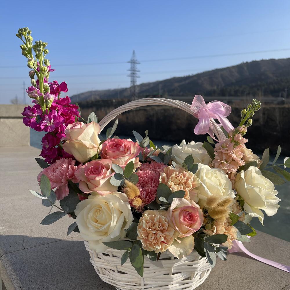 Ищете блестящий способ привнести в свой день немного цвета и радости? Посмотрите на нашу корзину цветов! Эта корзина наполнена таким разнообразием цветов, что вам покажется, будто вы гуляете по радужному саду.
