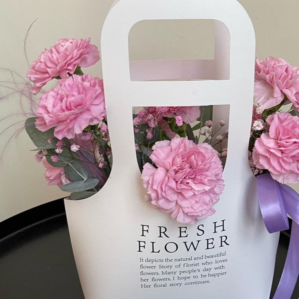 Эвкалипт – 1 шт.Лента атласная – 1 шт.Диантус – 9 шт.Ковыль – 1 шт.Оазис флористический – 1 шт.Пакет для цветов – 1 шт.