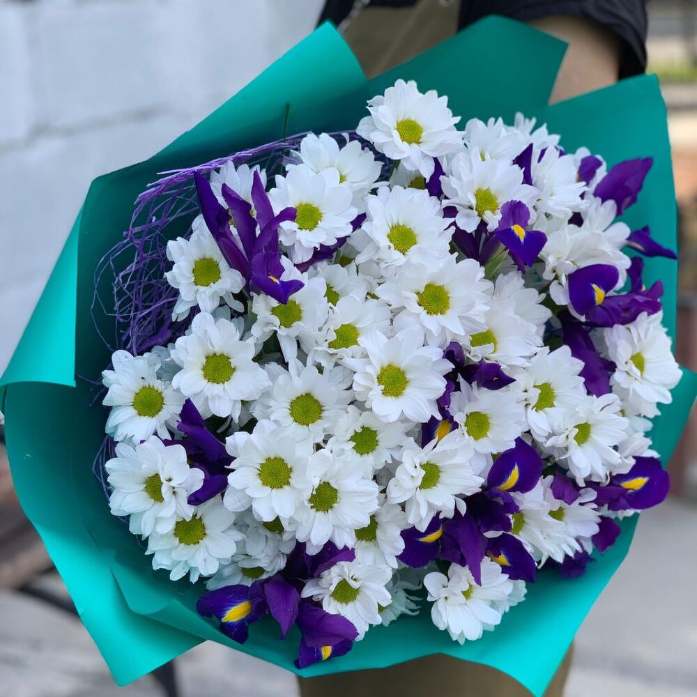 Букет хризантема Баккарди и ирисы