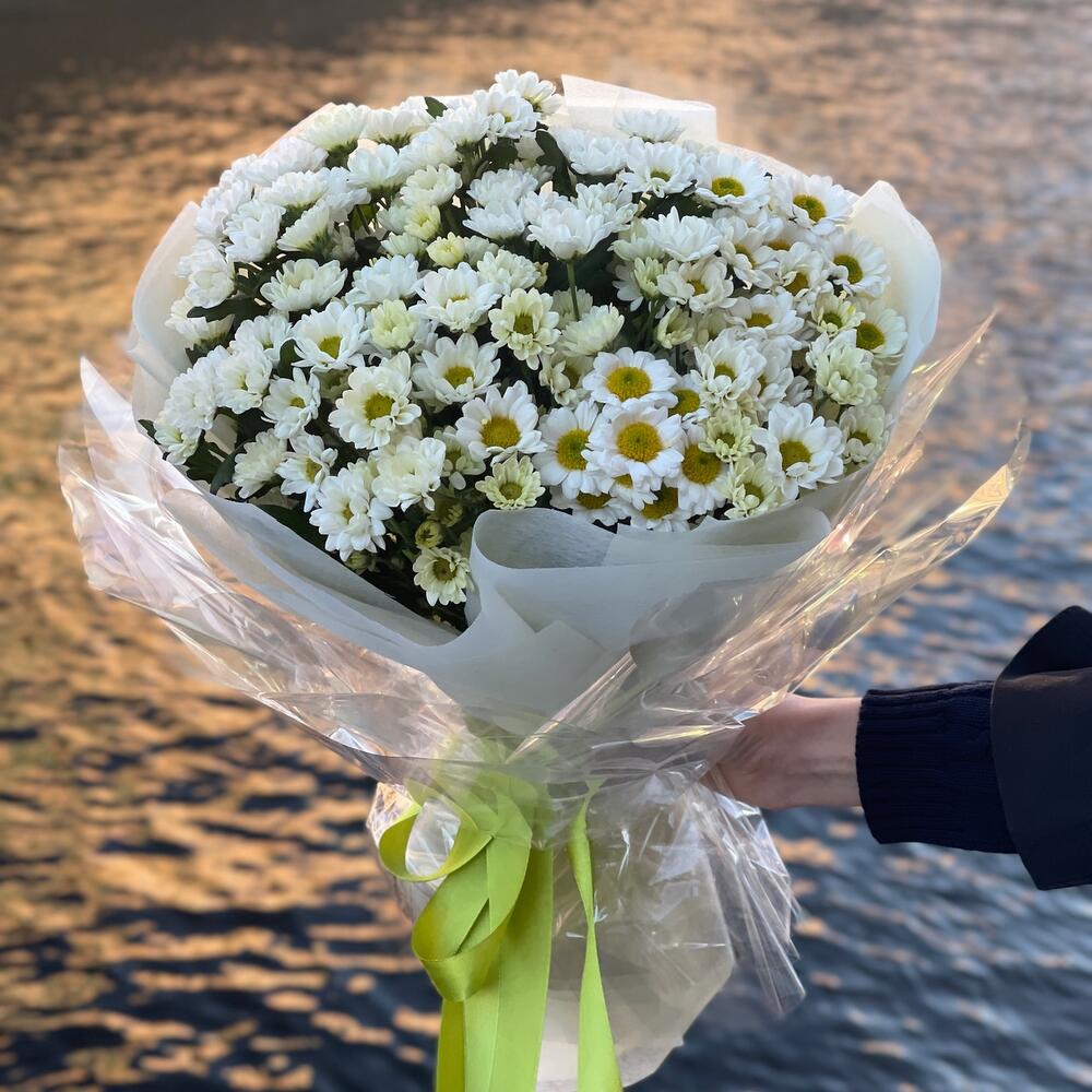 Букет из белой хризантемы “Раз-ромашка, даа- ромашка М»