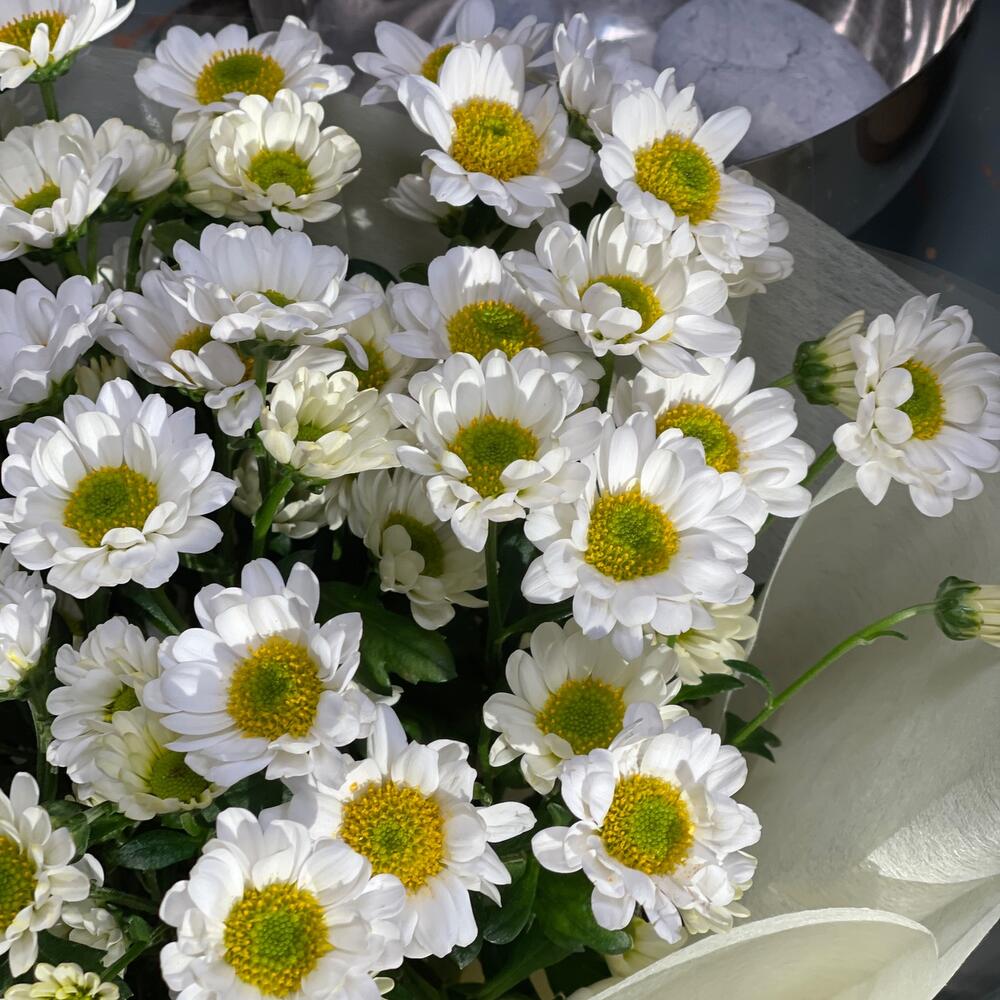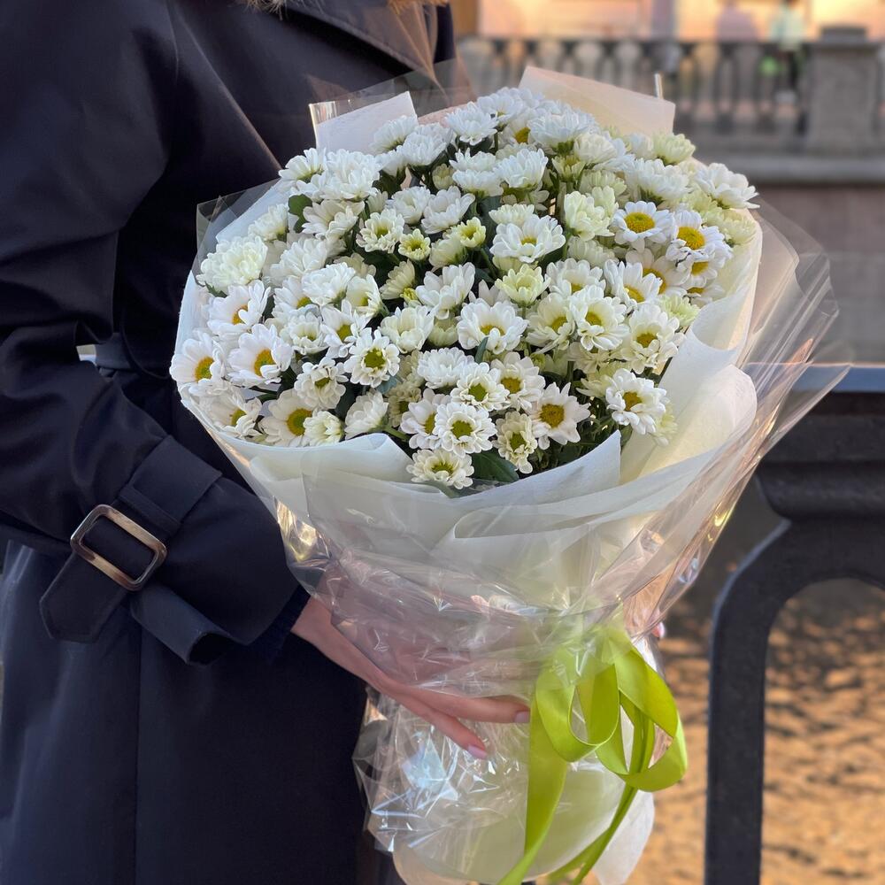 Букет из белой хризантемы "Раз-ромашка, даа- ромашка М»