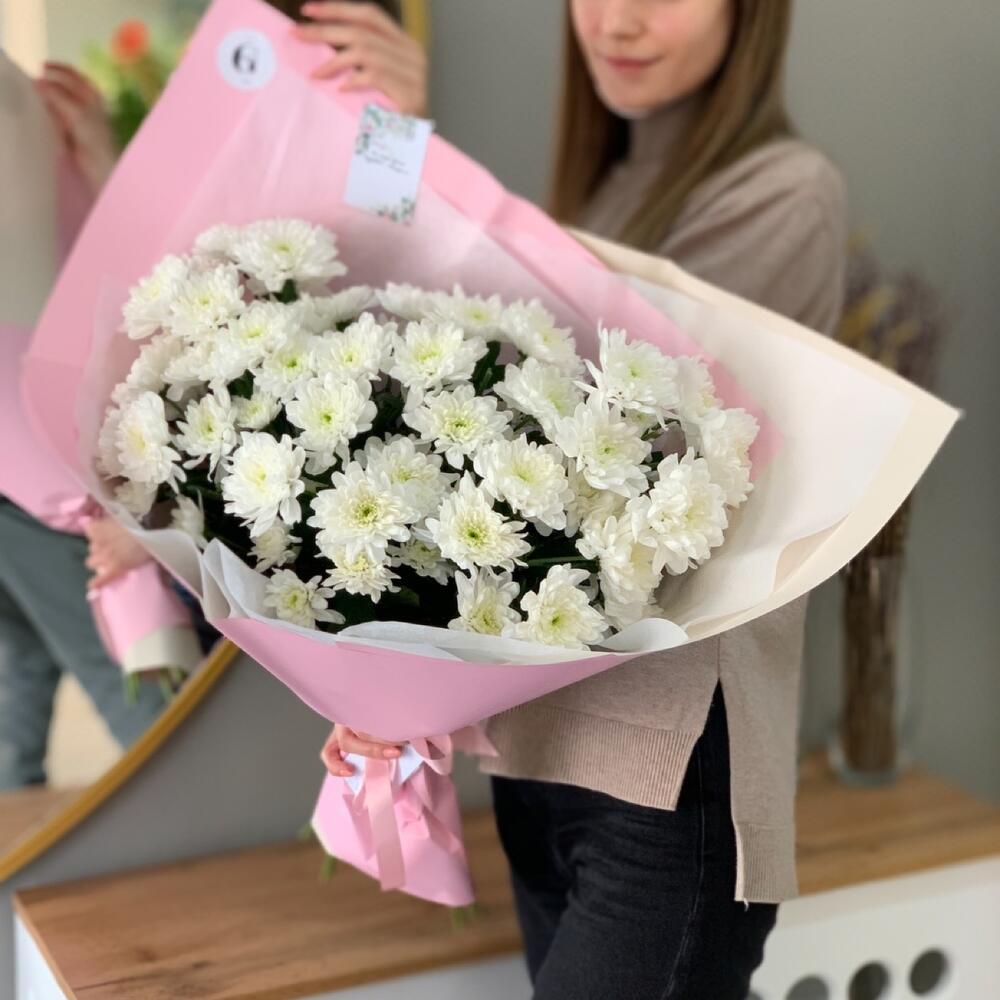 25 хризантем в крафте