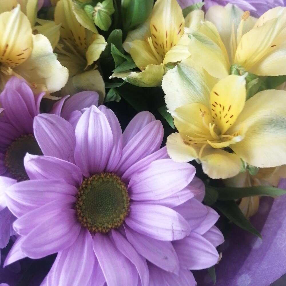 Букет из хризантемы и альстромерии “Сиреневый”