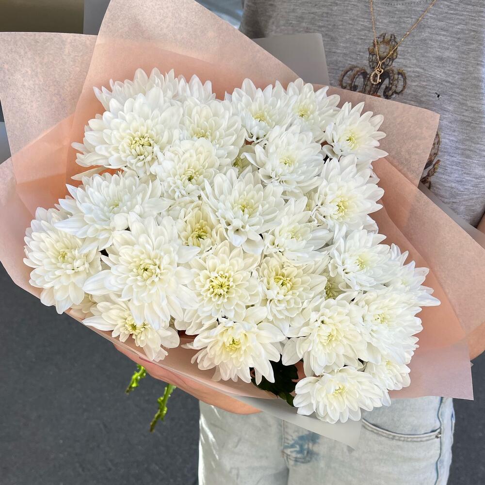 Упаковка дизайнерская – 2 шт.Хризантема кустовая зембла белая – 5 шт.