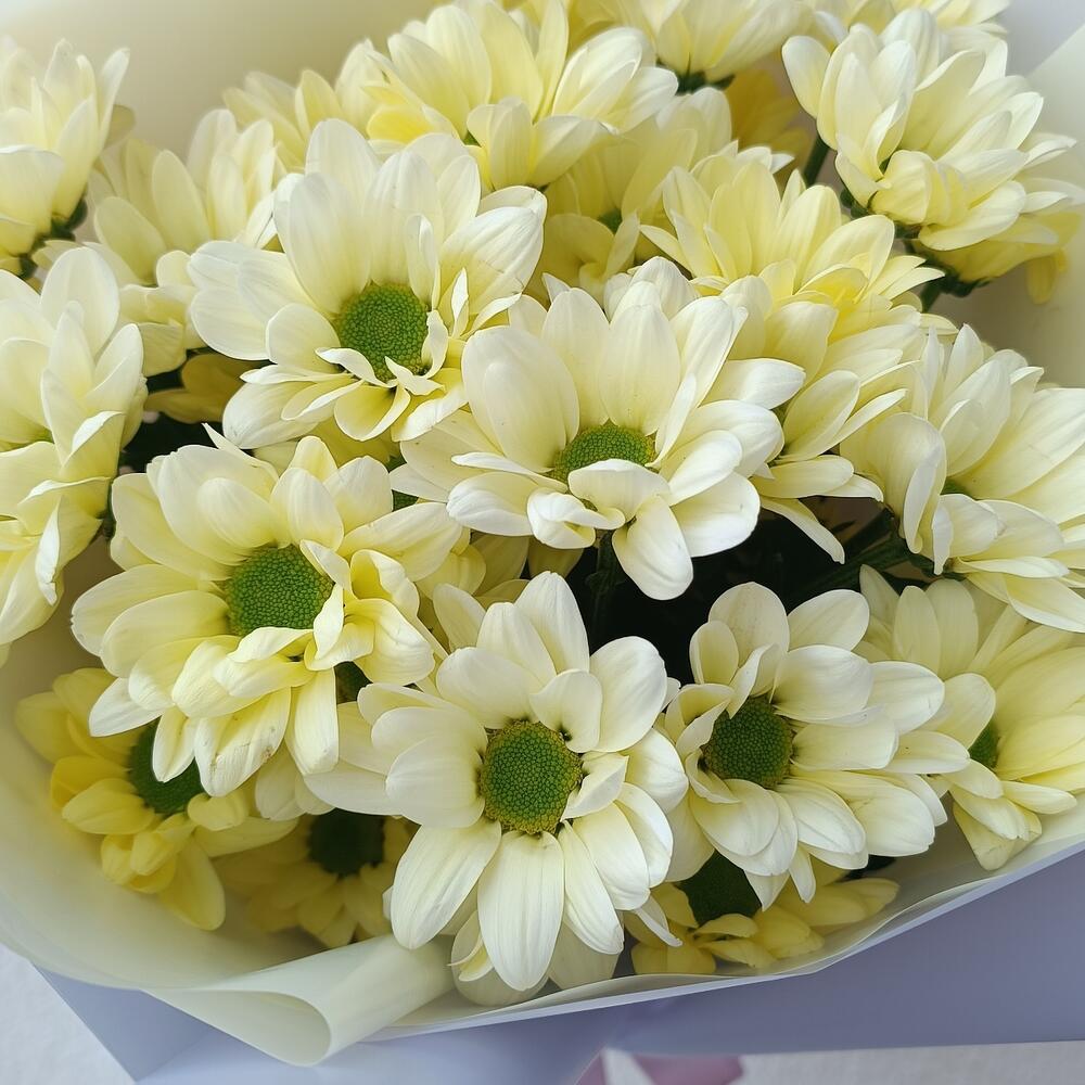Букет весёлых ромашек, нежного лимонного цвета поднимет настроение по любому поводу.