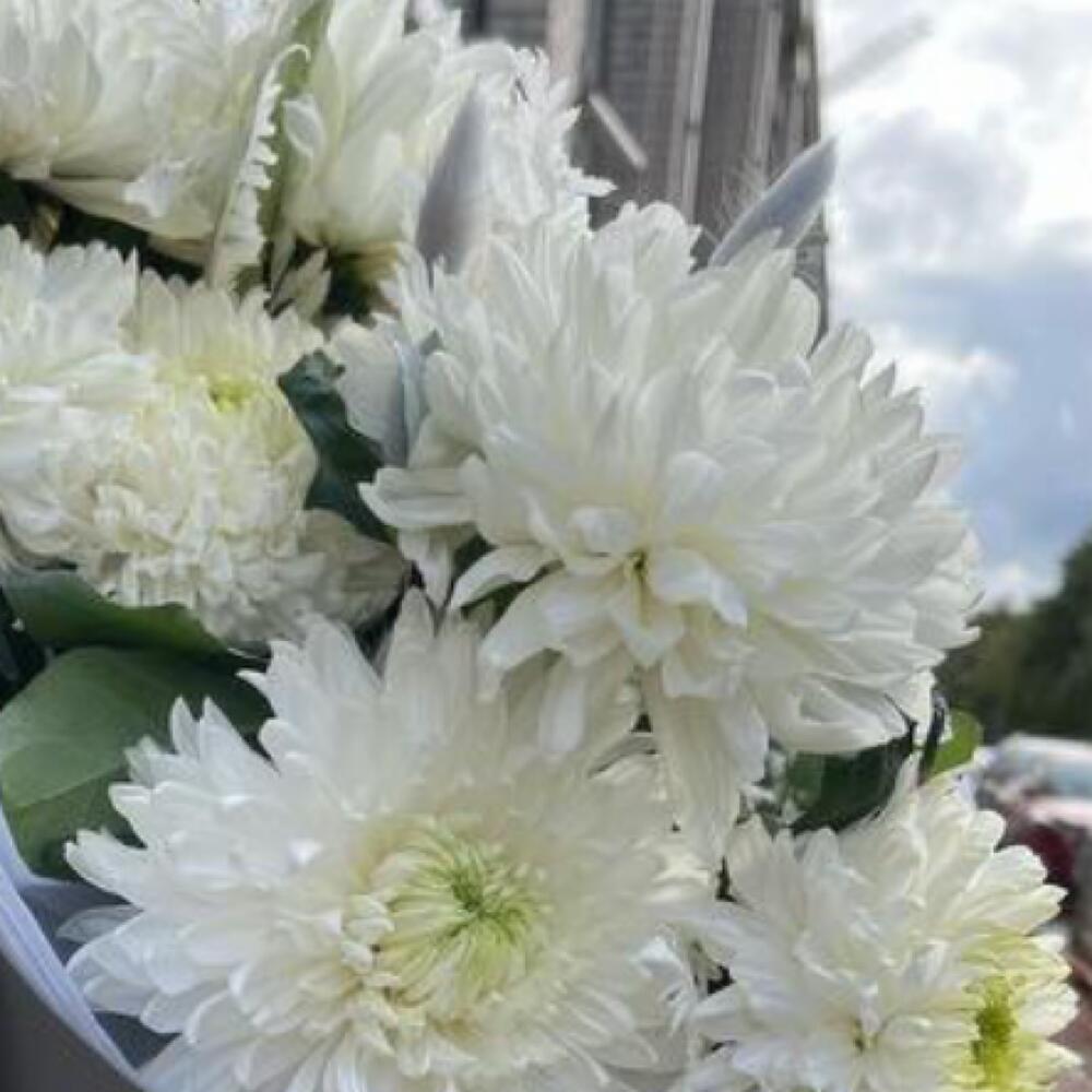 Моно букет из хризантем в дизайнерском оформлении