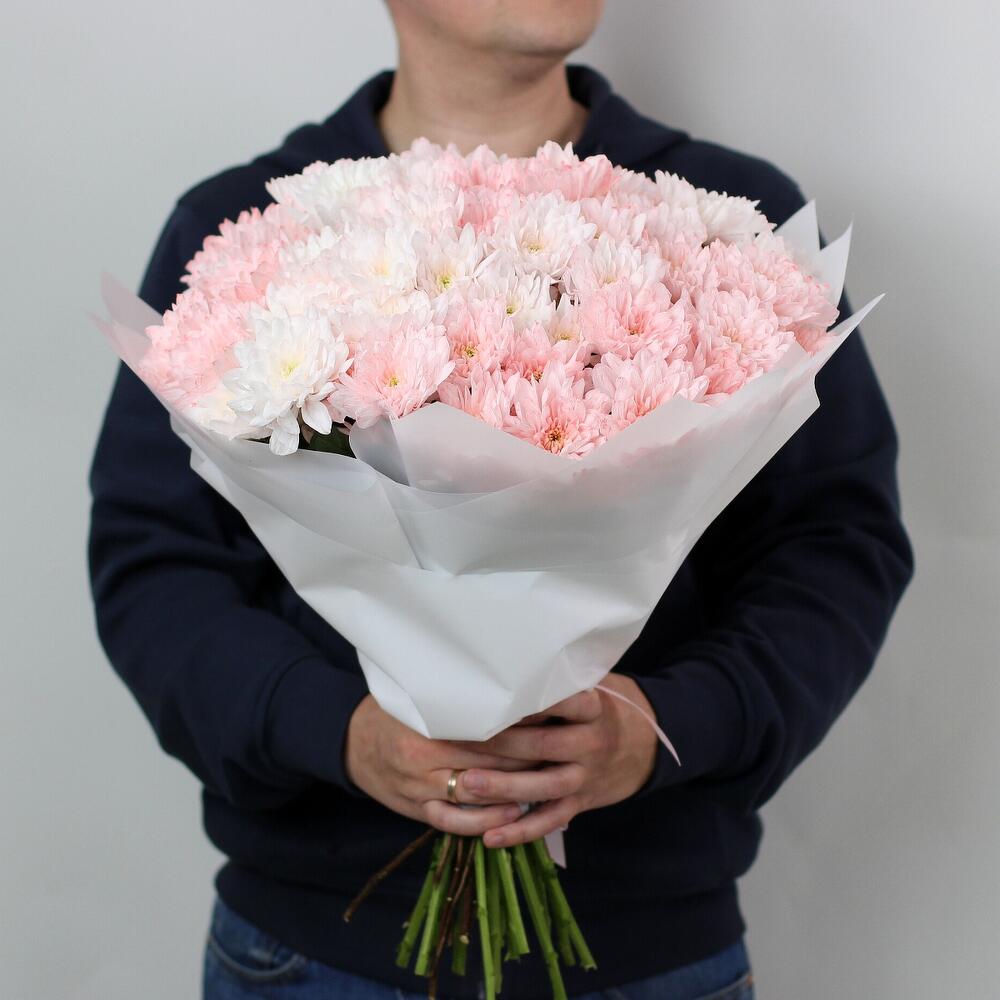 Хризантема кустовая – 15 шт.Лента атласная – 1 шт.Упаковка дизайнерская – 4 шт.