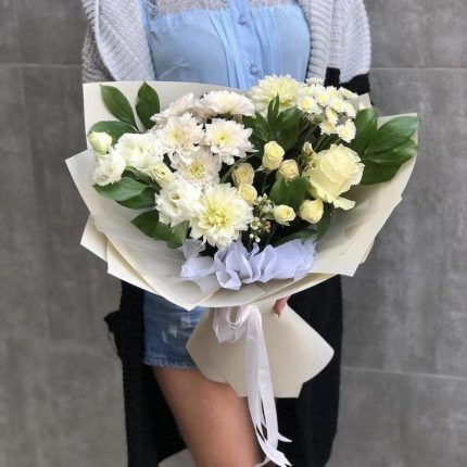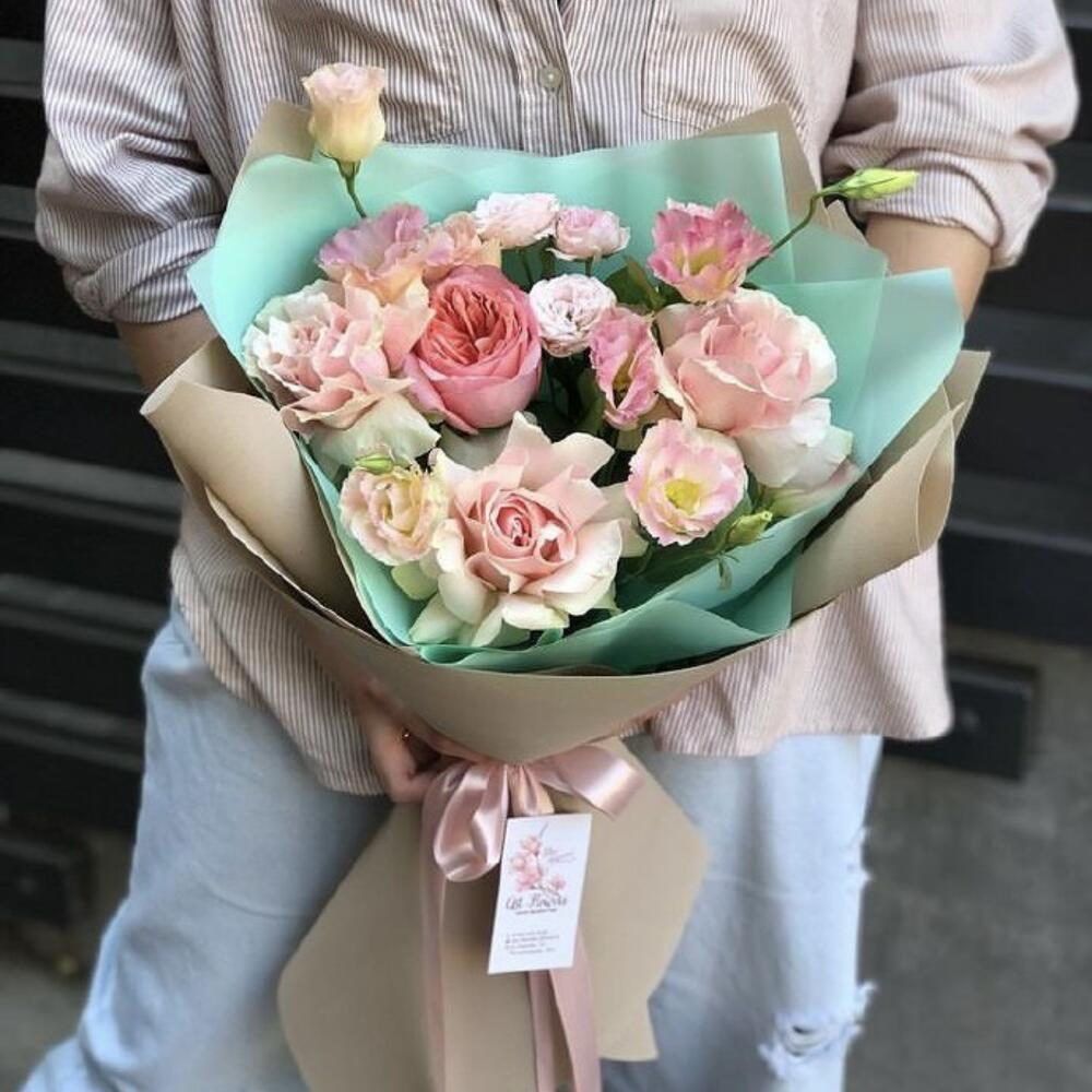 Альстромерии, Гвоздики, Кустовые розы, Лизиантусы, Розы, Хризантемы