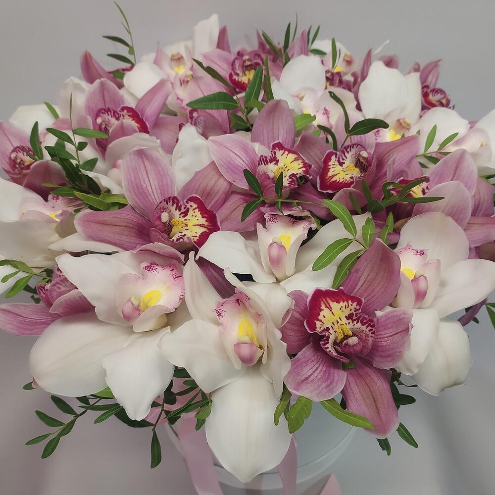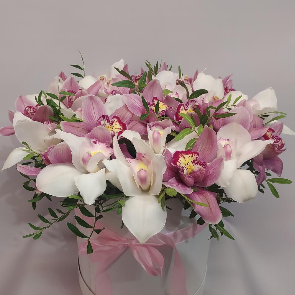 Композиция из Орхидей в шляпной коробке