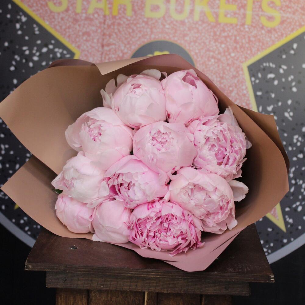 Лента атласная – 1 шт.Пион Сара Бернар – 11 шт.Пленка дизайнерская – 3 шт.