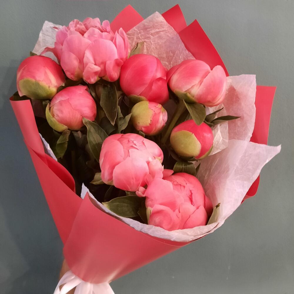 9 коралловых пионов