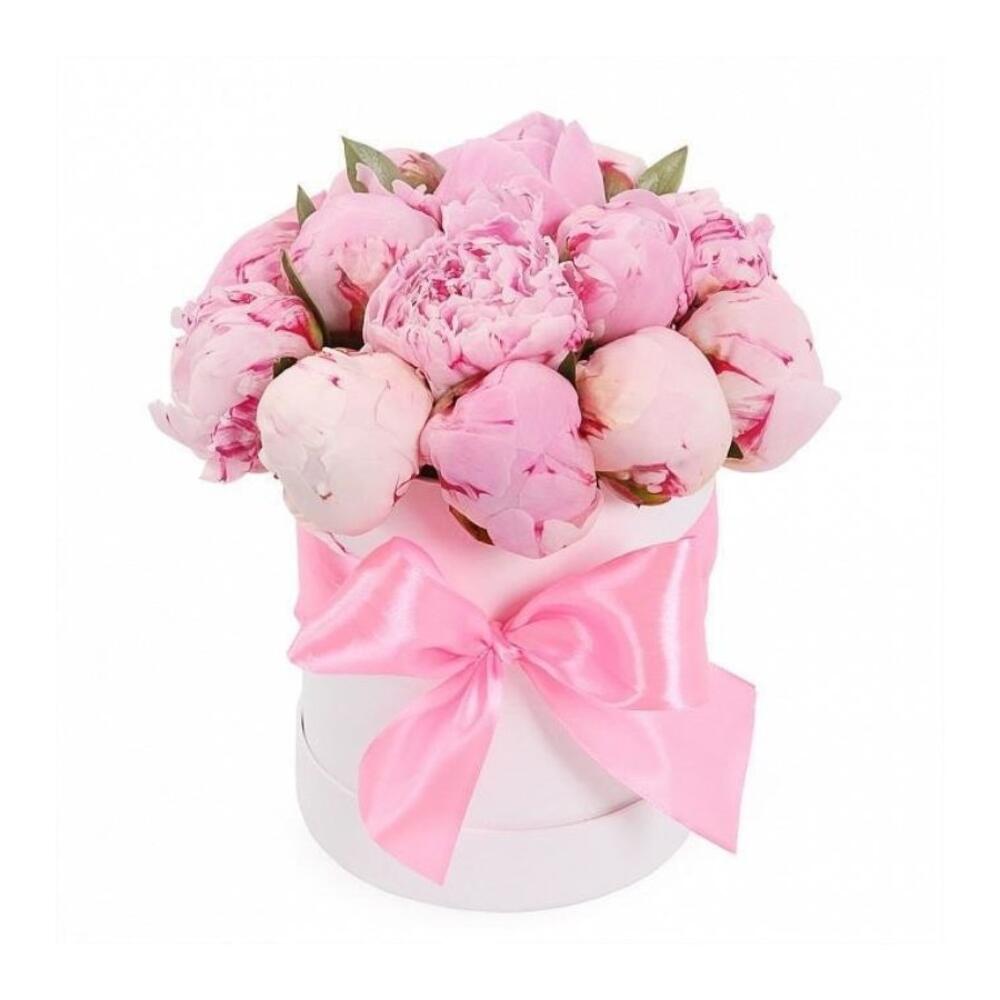 Пион розовый – 15 шт.Шляпная коробка – 1 шт.