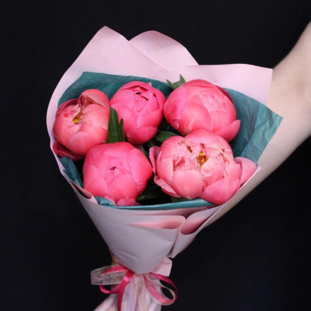 mono bouquet 79 из 5 пионов сорта coral charm