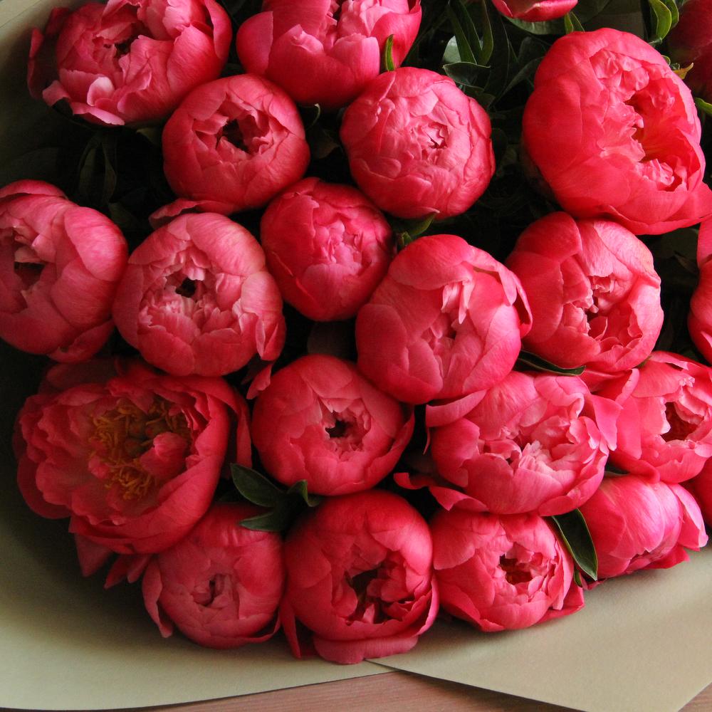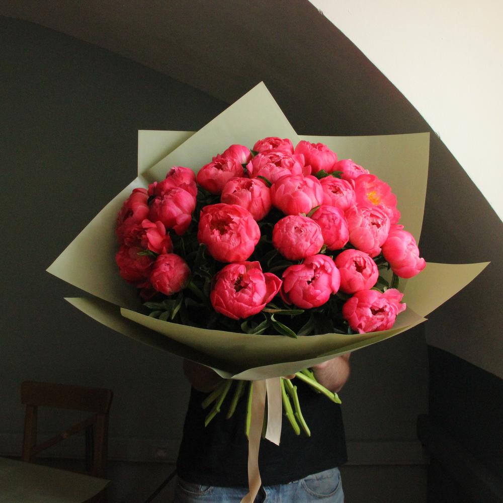 Огромный букет коралловых пионов