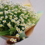 Салал – 5 шт.Лента атласная – 2 шт.Упаковка дизайнерская – 3 шт.матрикария (полевая ромашка) – 15 шт.