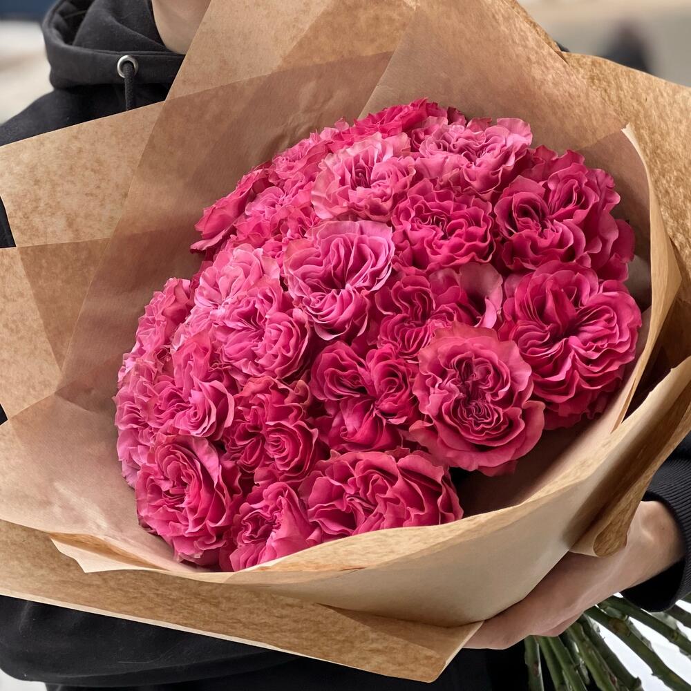 25 пионовидных розовых роз