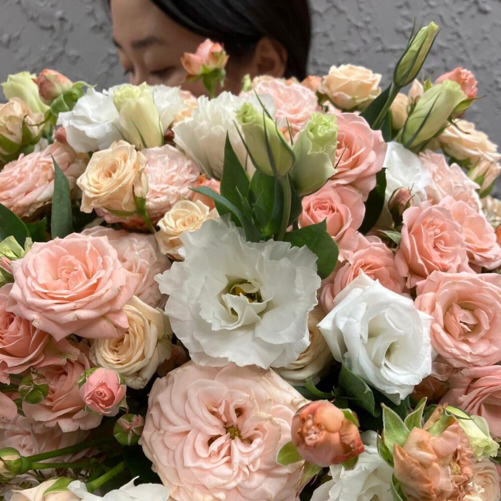 Большая коробка из роз и эустомы