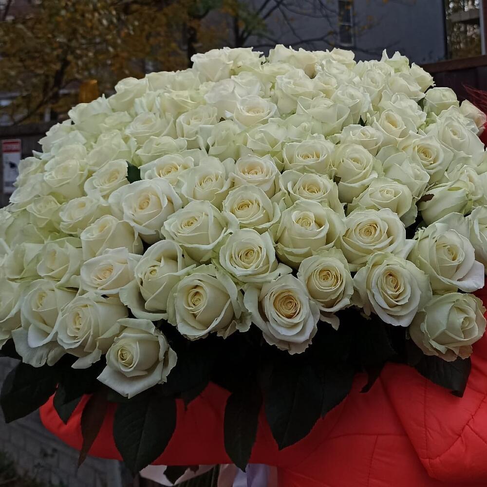 Букет 101 Белая Роза 70см
