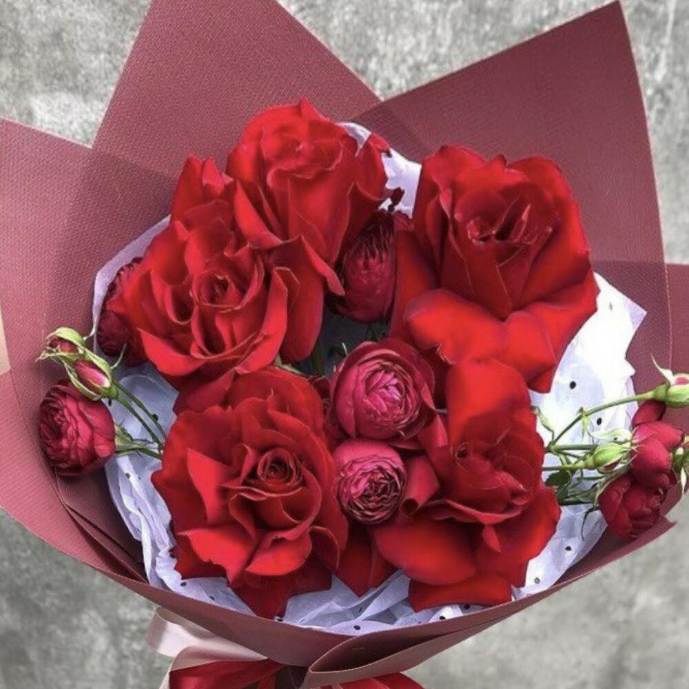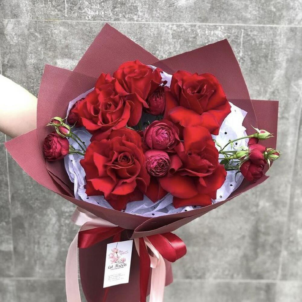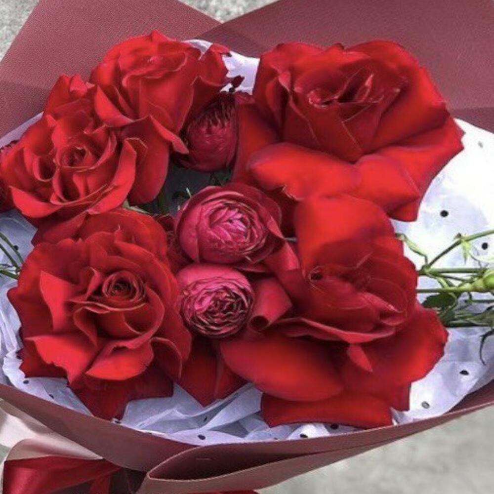 Гвоздики, Кустовые розы, Пионовидные розы, Розы