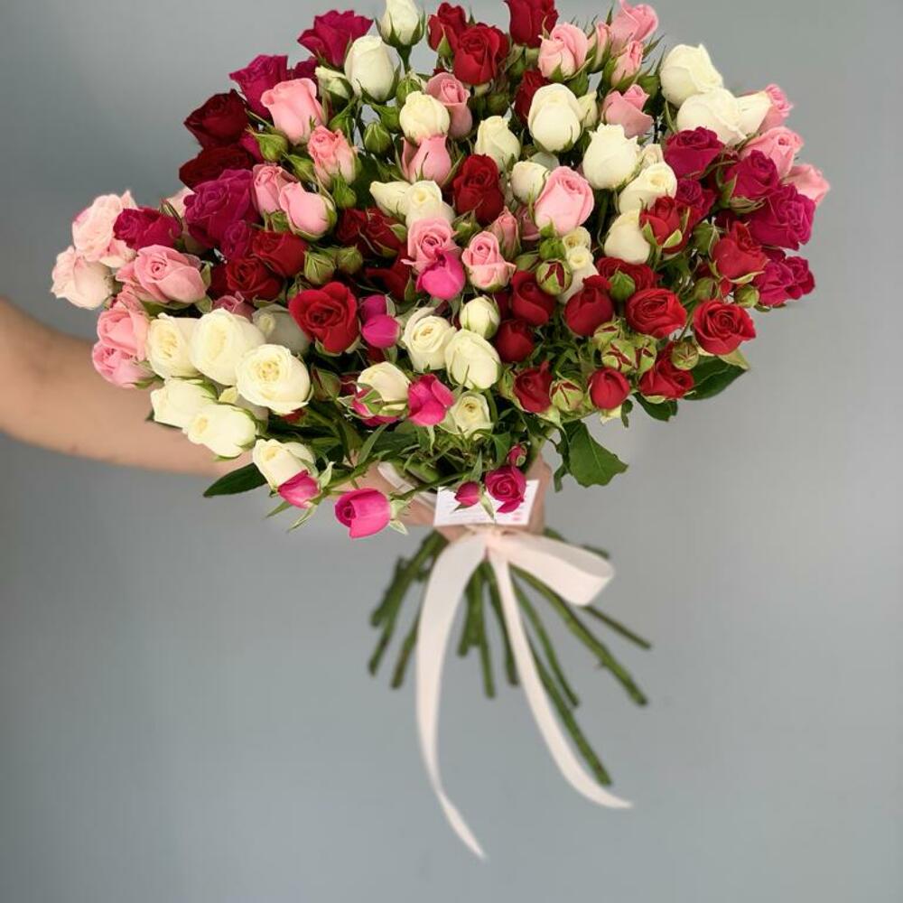 Гвоздики, Кустовые розы, Лизиантусы, Пионовидные розы, Розы