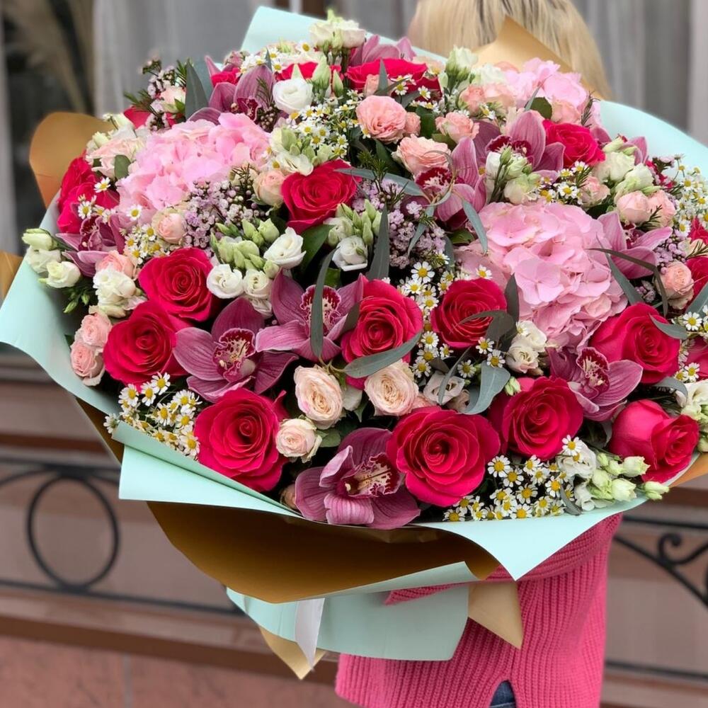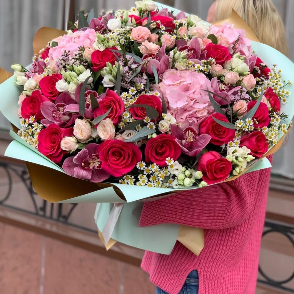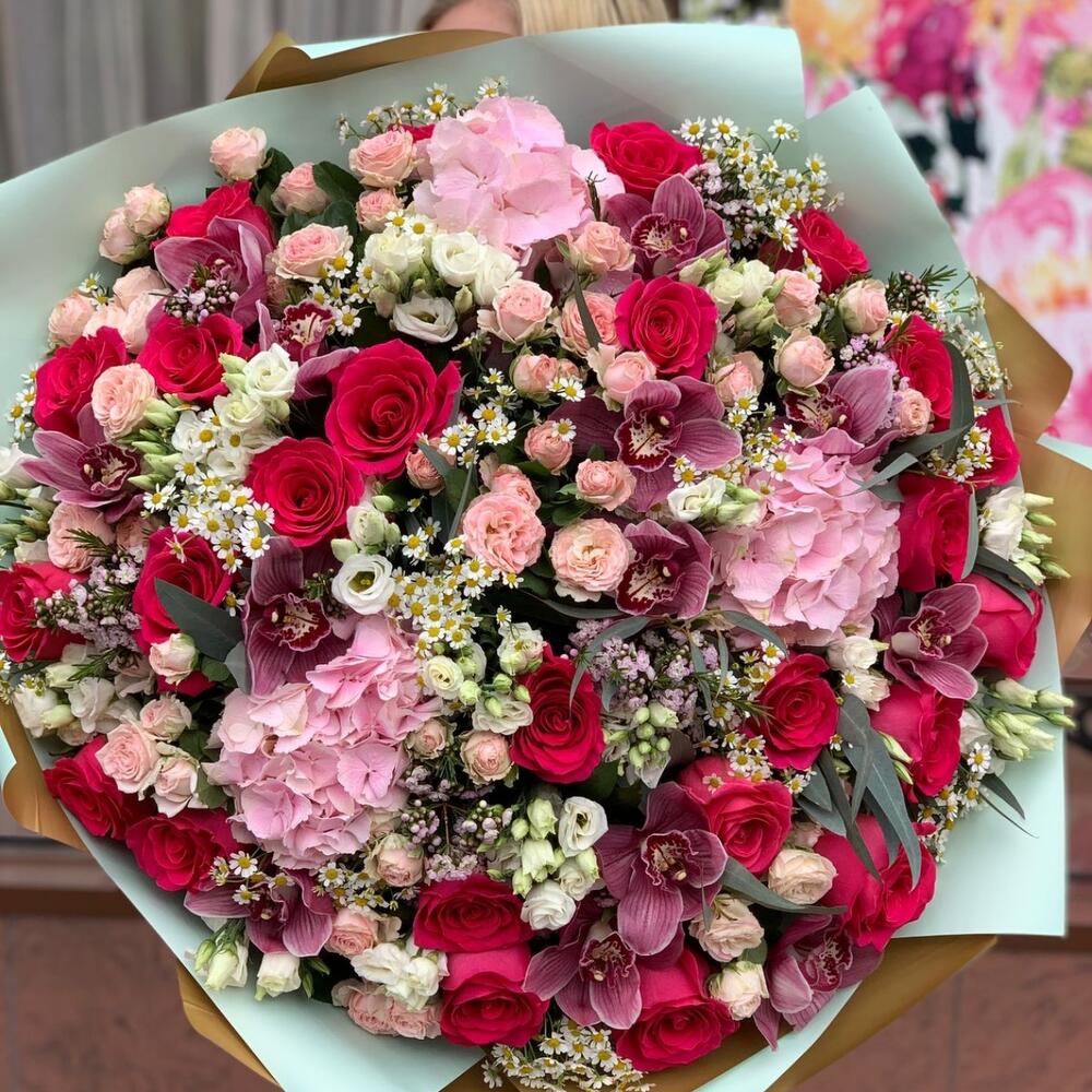 Гвоздики, Кустовые розы, Лизиантусы, Пионовидные розы, Розы