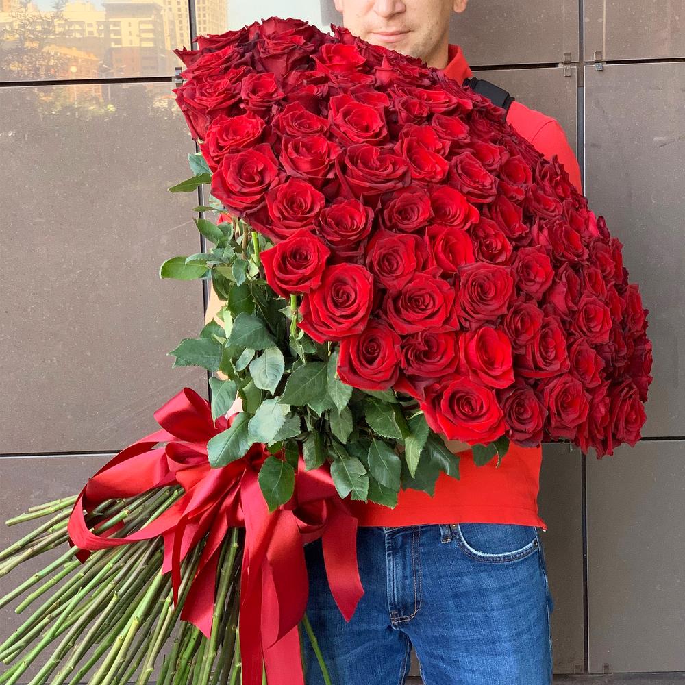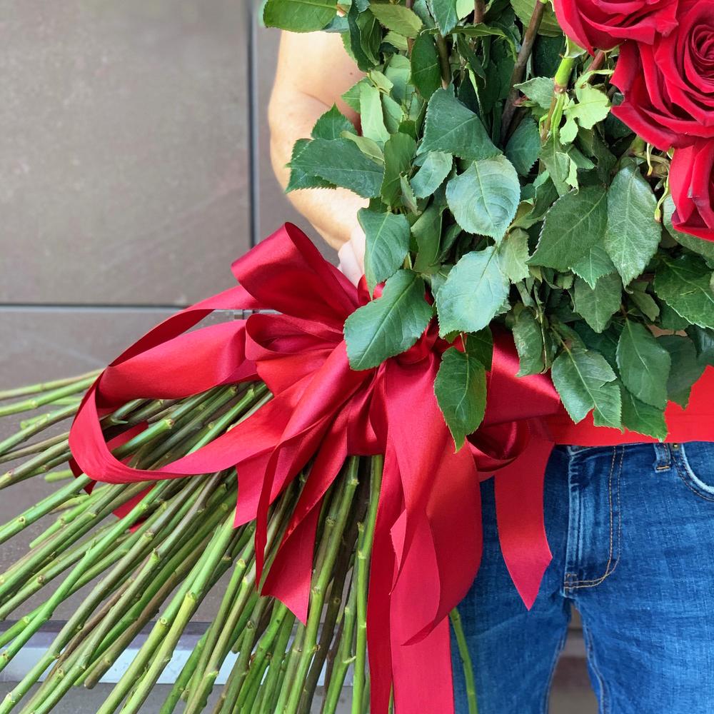 Роза Эквадор Премиум – 101 шт.Лента атласная – 5 шт.