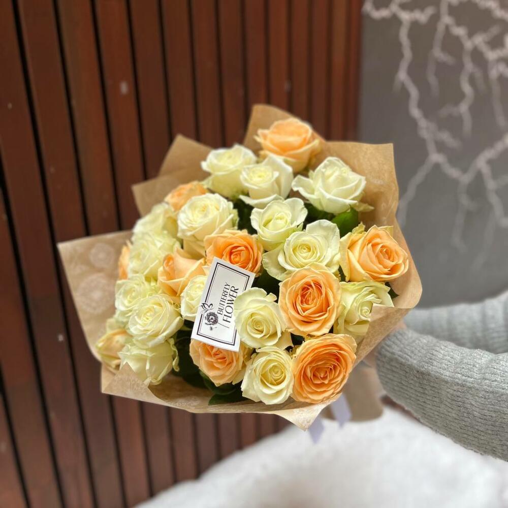 Букет из 25 роз в крафтовой упаковке “Антарктика”