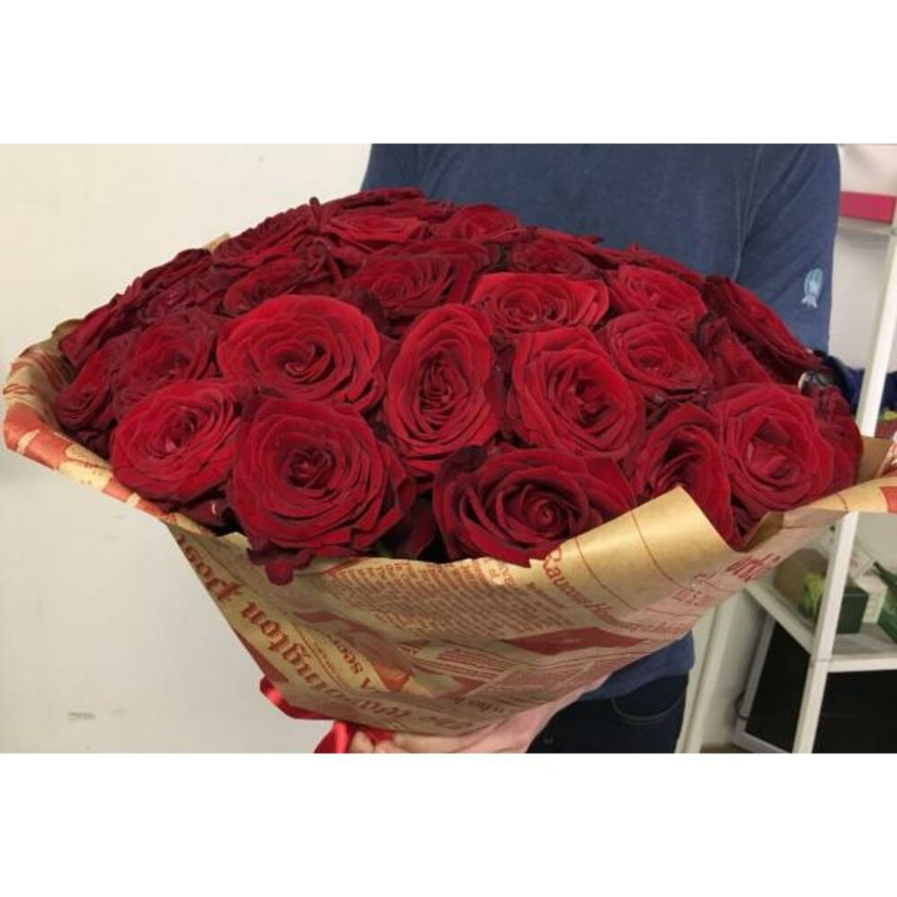 Букет из 51 красных роз premium 60-70 см (Эквадор) в стильной упаковке