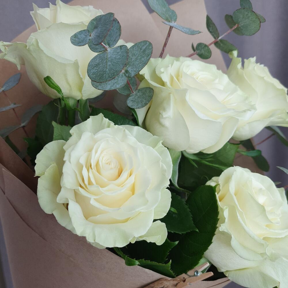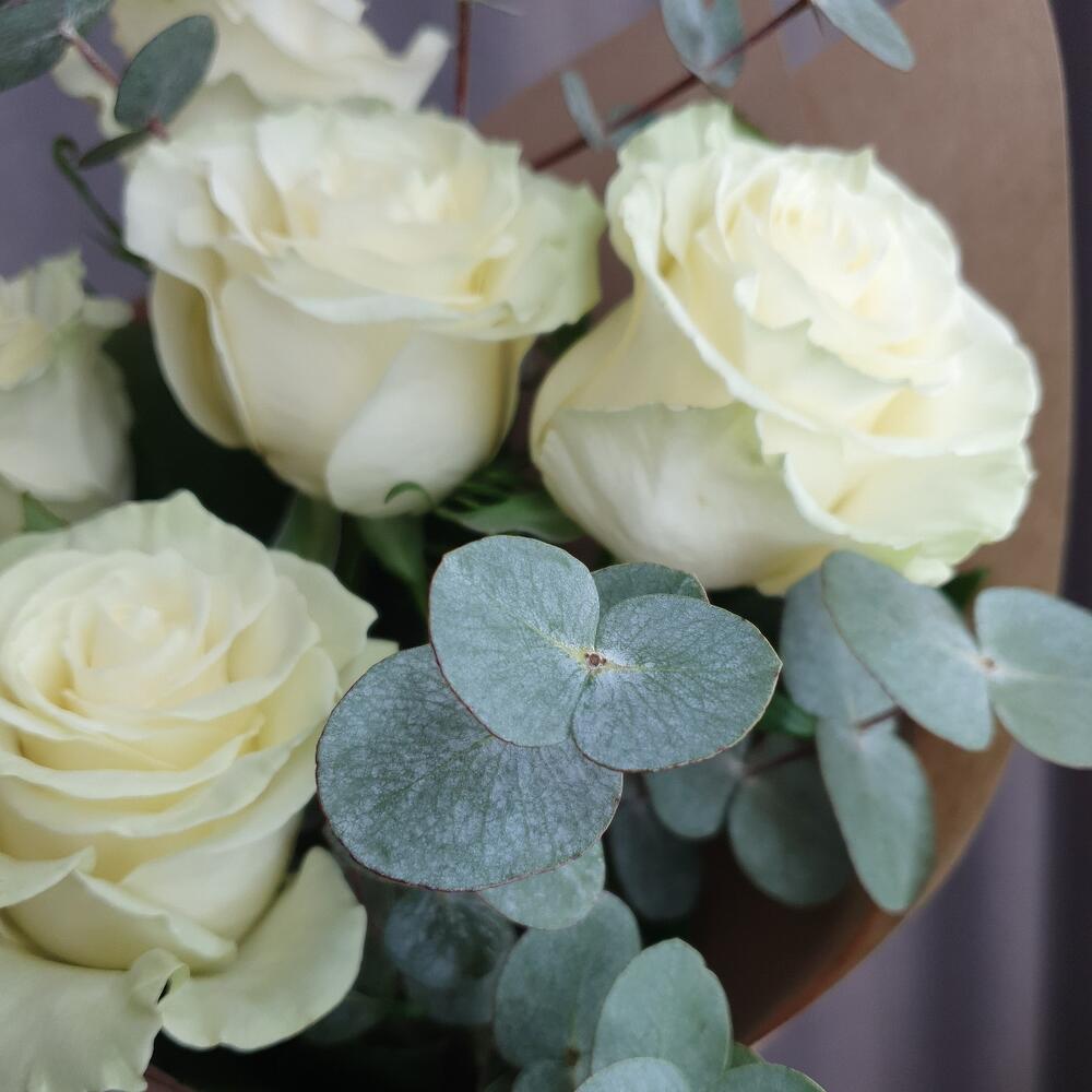 Эвкалипт – 2 шт.Роза – 5 шт.Крафт упаковка – 1 шт.