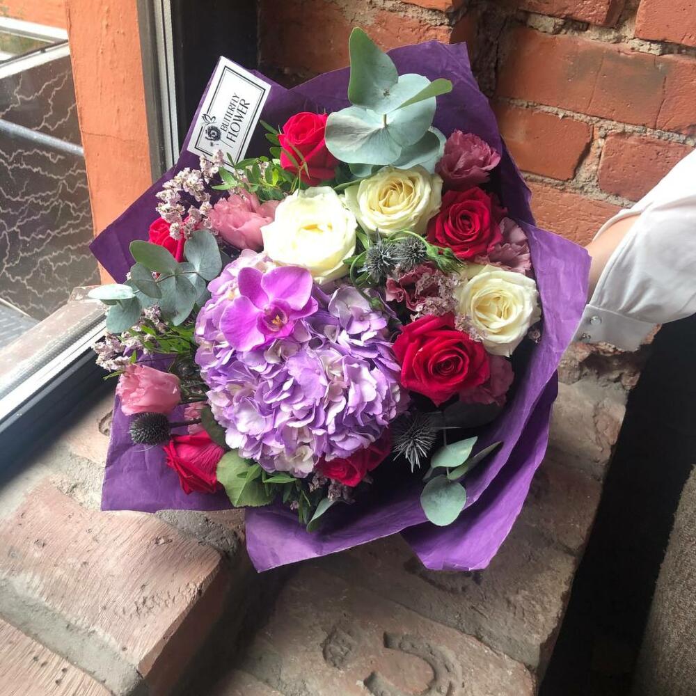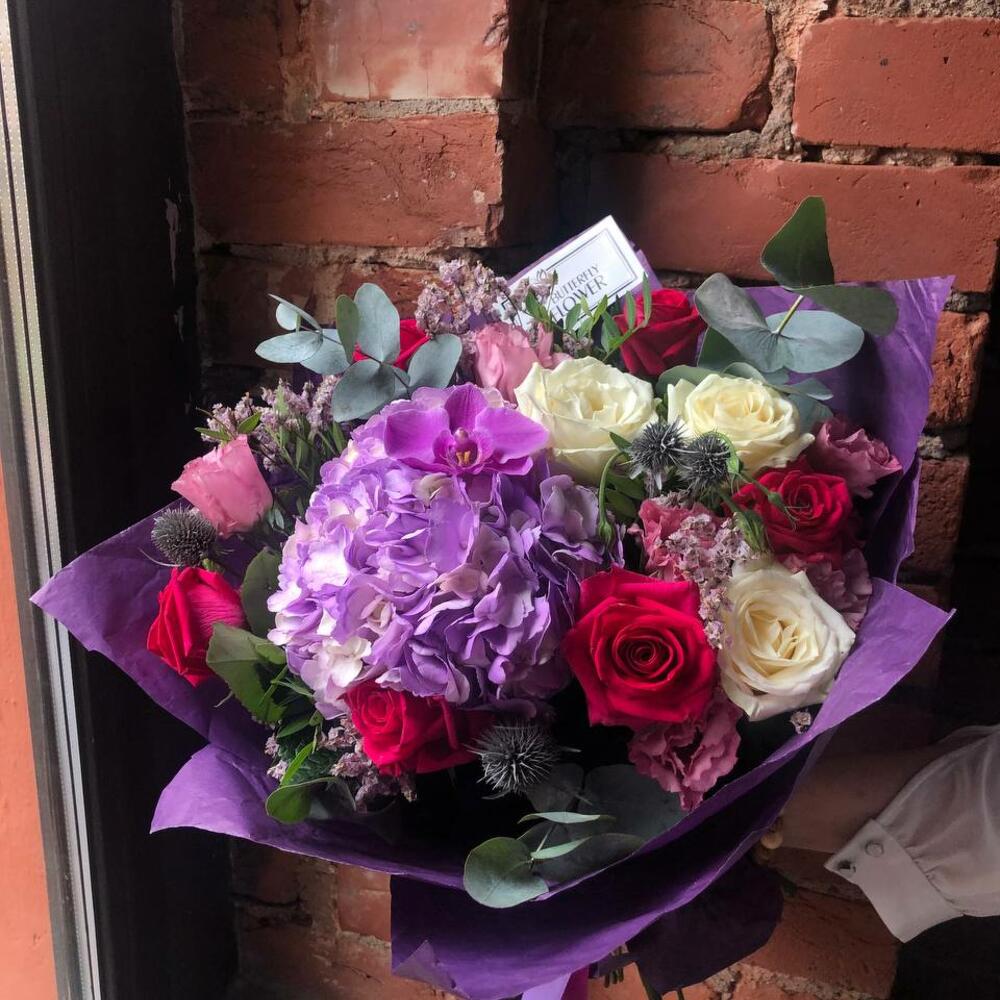 Букет из Гортензии, роз и хризантемы