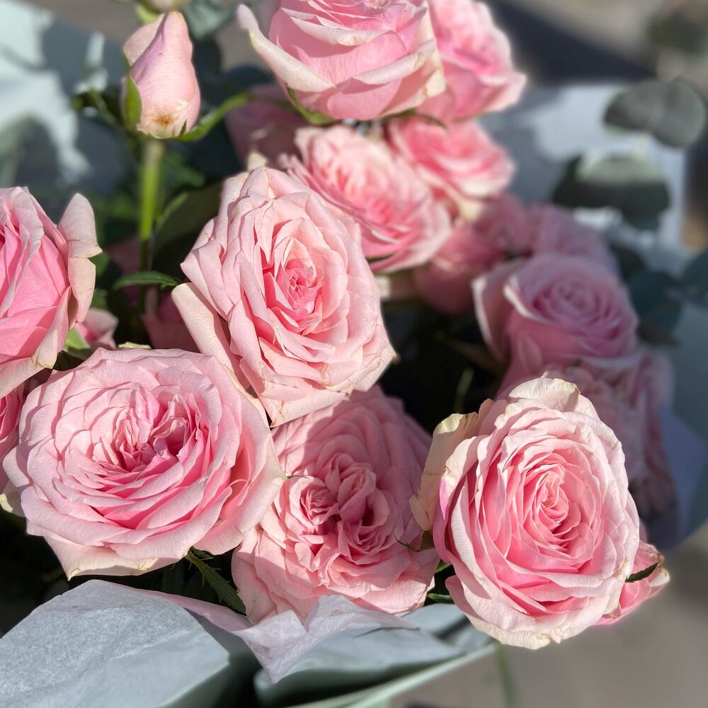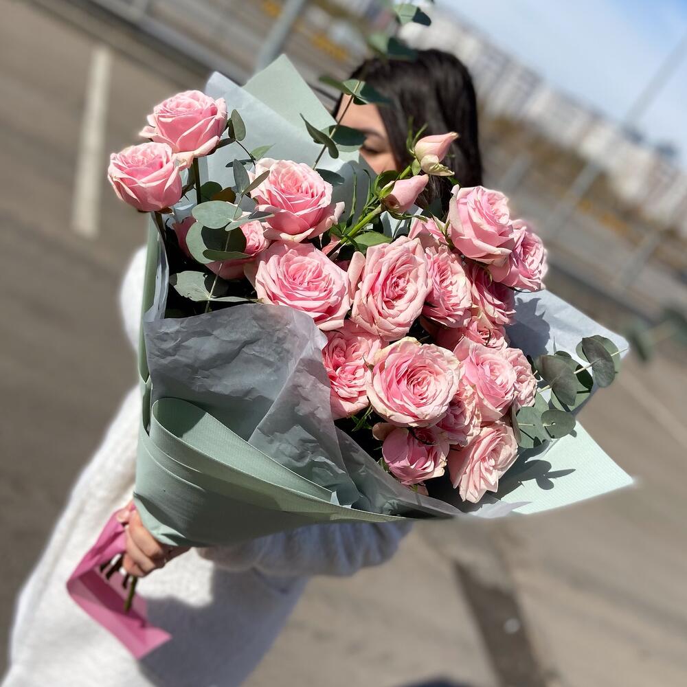 Альстромерии, Кустовые розы, Лизиантусы, Пионовидные розы, Розы, Ромашки