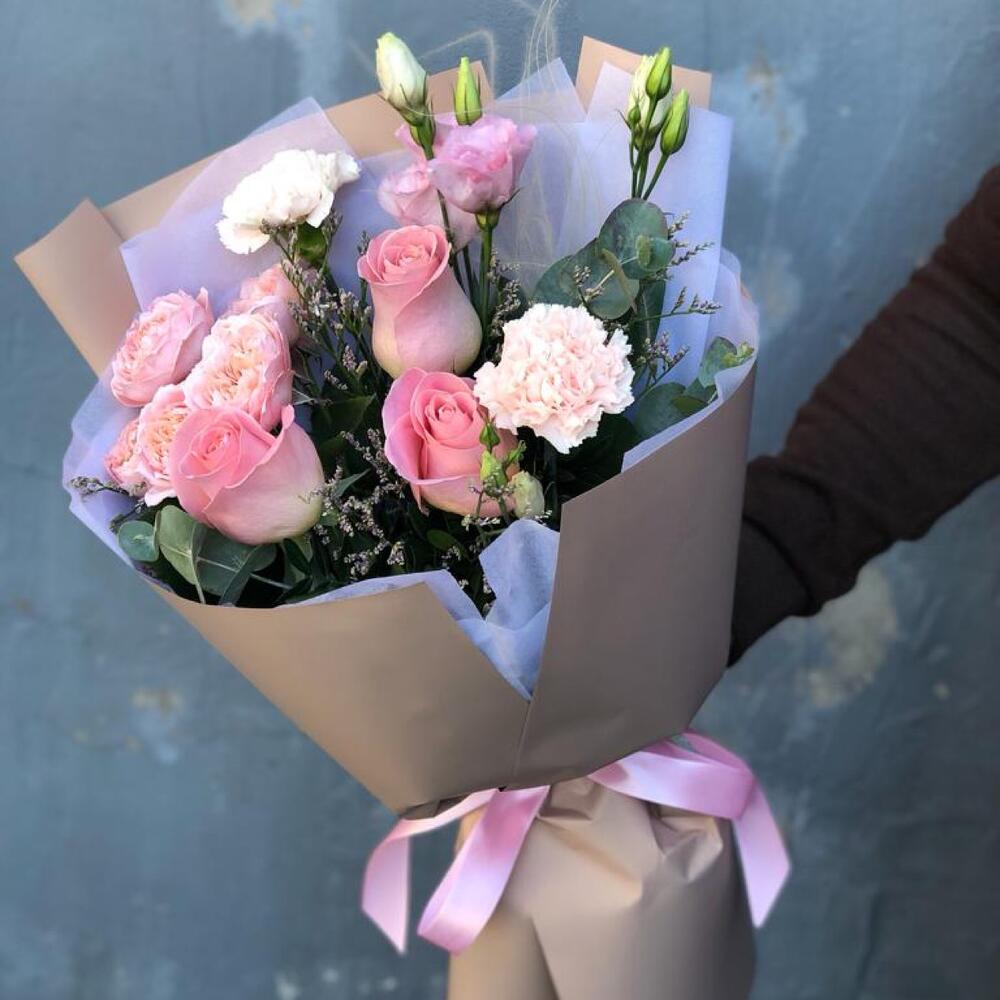 Гвоздики, Кустовые розы, Пионовидные розы, Розы